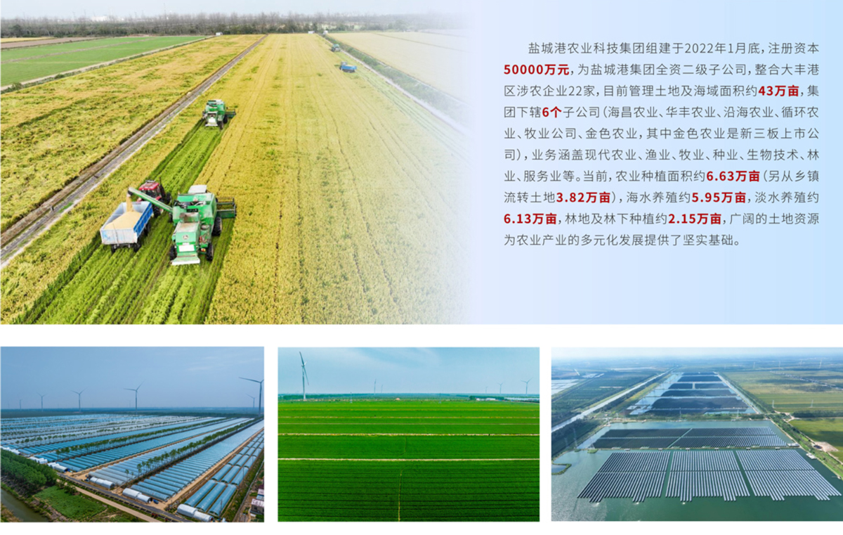 近年來,公司發揮資源優勢,大力發展現代農業、數字農業、生態農業、智慧農業,引導傳統養殖業、種植業、林業向高附加值產業過渡,錨定打造全國爭先、全省領先、全市率先的“現代科技農業樣板區”的目標,高標準推進數字化精品種植示范區、機械化高效農業示范區、循環化綠色種養示范區、生態化水產養殖示范區、低碳化綠色能源示范區、多元化林下經濟示范區“六大示范區”建設,打造農業發展“新高地”,為鹽城港高質量發展賦能助力,為提升鹽城市農業現代化水平作出貢獻。