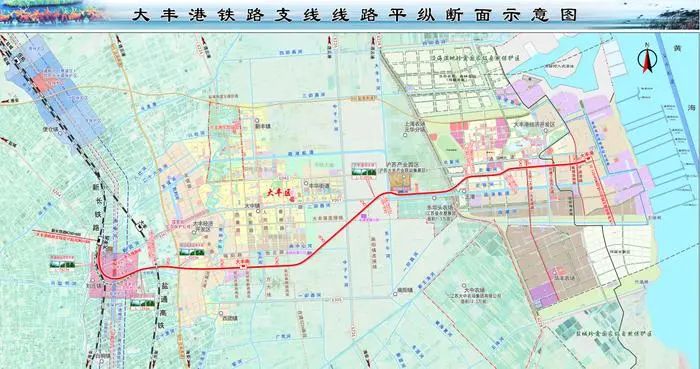 據悉,大豐港鐵路支線線路自新長鐵路大豐西站(劉莊站)引出,向南跨越新團河、大劉路、折向東跨通榆河,下穿鹽通高鐵,上跨沈海高速,在大豐開發區境內預留大豐南站,再向東依次跨越疏港航道、國道228,沿北灌河南側向東至博匯集團公司北側,在大豐港經濟開發區境內設大豐港站。線路全長50.69公里,橋梁占比85.25%。建設工期兩年六個月,預計2025年2月建成通車。