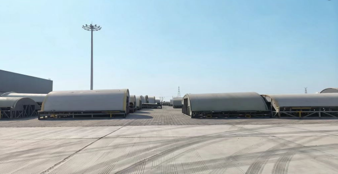 據(jù)悉,此次堆存的36件“陽模”新貨種均系風(fēng)電葉片模具的“家庭成員”,作為國家一類開放口岸,濱海港區(qū)物流公司創(chuàng)新推出“物流+轉(zhuǎn)運+堆存”一體化服務(wù)模式。針對“陽模”體積大、精度要求高等特性,公司專門制定專項作業(yè)方案,劃定2600平方米專屬堆存空間;為便于吊裝與轉(zhuǎn)運,提前對3組84米超長“陽模”進行科學(xué)截斷處理。最終,36件總重量達228噸的“陽模”貨種,僅用2天時間便順利轉(zhuǎn)運至海河聯(lián)運指定區(qū)域完成堆存、保管,拓寬了港區(qū)新貨種作業(yè)品類。