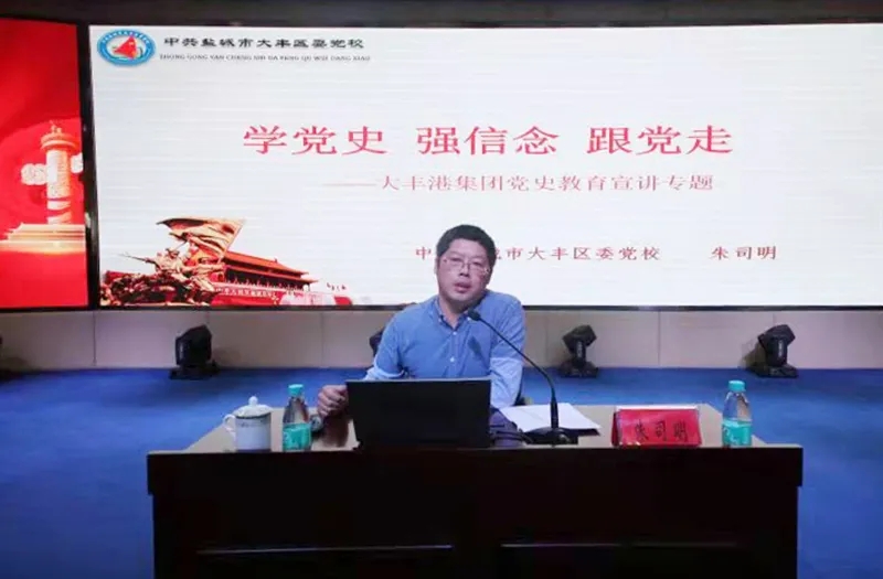 6月5日上午,大豐港區(qū)開展“學(xué)黨史、強(qiáng)信念、跟黨走”黨史宣講活動(dòng)。大豐港區(qū)黨委副書記、董事、總經(jīng)理繆存美,大豐港區(qū)領(lǐng)導(dǎo)班子全體、港區(qū)機(jī)關(guān)全體和各子公司中層副職以上干部參加活動(dòng)。