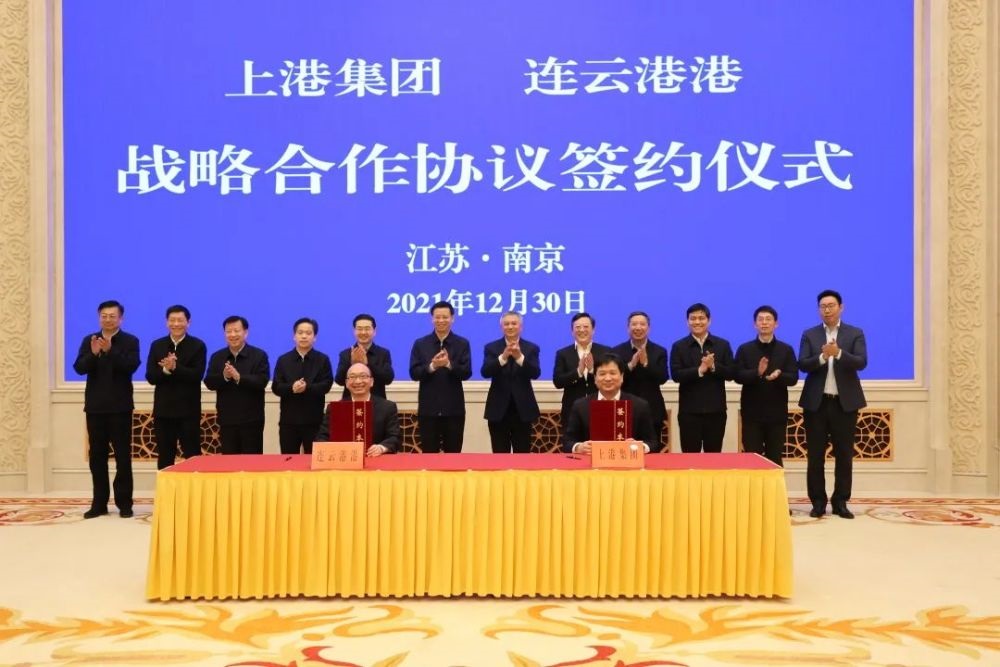2021年12月30日,上海國際港務(集團)股份有限公司和連云港港口控股集團有限公司,在南京正式簽署戰略合作協議,標志著在共建“一帶一路”的背景下,上海港、連云港港的合作翻開嶄新一頁,連云港市打造“千萬標箱、東方大港”邁出了關鍵一步。