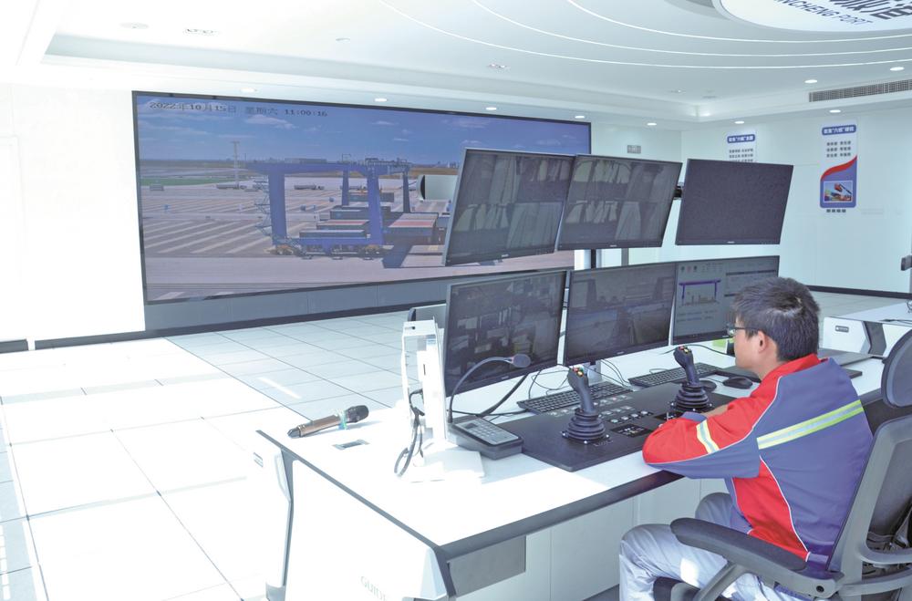 “堆場改造完成后,借助‘5G+北斗+高精度地圖’定位技術相融合,創(chuàng)造性地實現了集裝箱作業(yè)全過程應用,助力設備實現厘米級精度操作,構建了高效、安全、流暢、穩(wěn)定的運行環(huán)境,讓遠程調度作業(yè)更精準,抓箱效率提升了35%以上,堆場設備整體作業(yè)效率可提升30%。”集裝箱自動化團隊負責人陳越說,同時通過對堆場照明系統、配電房、海關閘口等設施進行智能化管理,在使用LED節(jié)能燈具的基礎上,仍可實現綜合節(jié)電率15%,集裝箱卡車平均進出閘口用時僅需20秒,通行效率提高了50%以上。