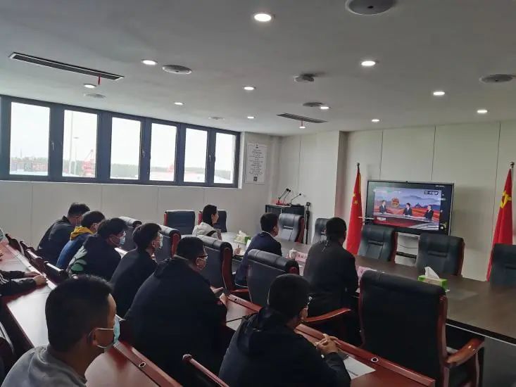 港口公司工作人員集中收看大會(huì)實(shí)況直播