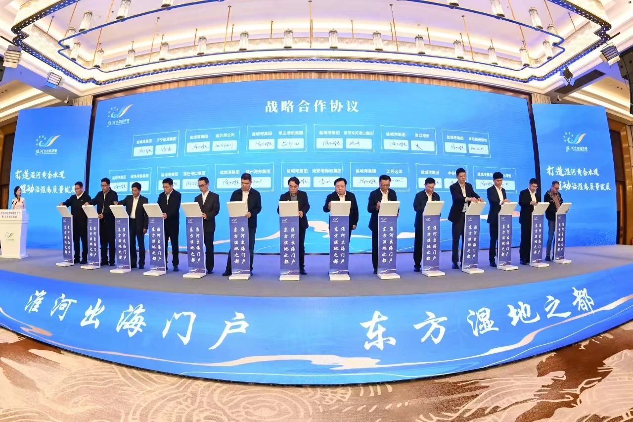 會上,與會人員觀看了淮河生態(tài)經(jīng)濟帶協(xié)同發(fā)展成果專題片,聽取了淮河生態(tài)經(jīng)濟帶城市合作工作推進情況、淮河生態(tài)經(jīng)濟帶市際合作協(xié)議及重點合作事項。交通運輸部規(guī)劃研究院專家圍繞“淮河水運啟新程 航運藍圖展未來”作主旨演講。29個成員市(縣)負責同志共同簽署了《淮河生態(tài)經(jīng)濟帶生態(tài)環(huán)境保護市際合作協(xié)議》《淮河生態(tài)經(jīng)濟帶水運高質(zhì)量發(fā)展市際合作協(xié)議》《淮河生態(tài)經(jīng)濟帶綠色低碳發(fā)展市際合作協(xié)議》,淮河沿線港航、物流企業(yè)等單位與鹽城港集團簽署了戰(zhàn)略合作協(xié)議。沿淮成員城市(縣)長作交流發(fā)言。淮河生態(tài)經(jīng)濟帶城市合作第六次市長會商會承辦城市安徽省亳州市向沿淮市(縣)發(fā)出盛情邀請。
