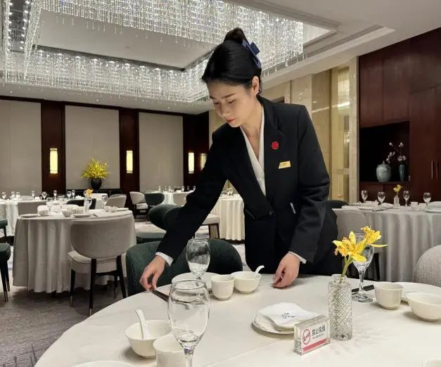 在鹽城港半島溫泉酒店,總能看到一個(gè)身影穿梭在中餐廳的各個(gè)角落。她時(shí)而彎腰檢查餐具擺放的角度,時(shí)而蹲下整理桌布的褶皺,每一個(gè)細(xì)節(jié)都逃不過她專注的目光。她就是張曉芳,一個(gè)用三年時(shí)間從普通服務(wù)員成長為獨(dú)當(dāng)一面的中餐廳副經(jīng)理的“95后”姑娘。