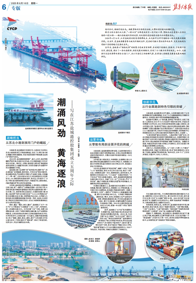 五載奮進,鹽城港勇立時代潮頭,以改革創(chuàng)新實現了從傳統(tǒng)管理到現代治理的跨越,完成了從行業(yè)跟跑到特色引領的華麗轉身,在轉型發(fā)展中書寫向海圖強的港航新篇。