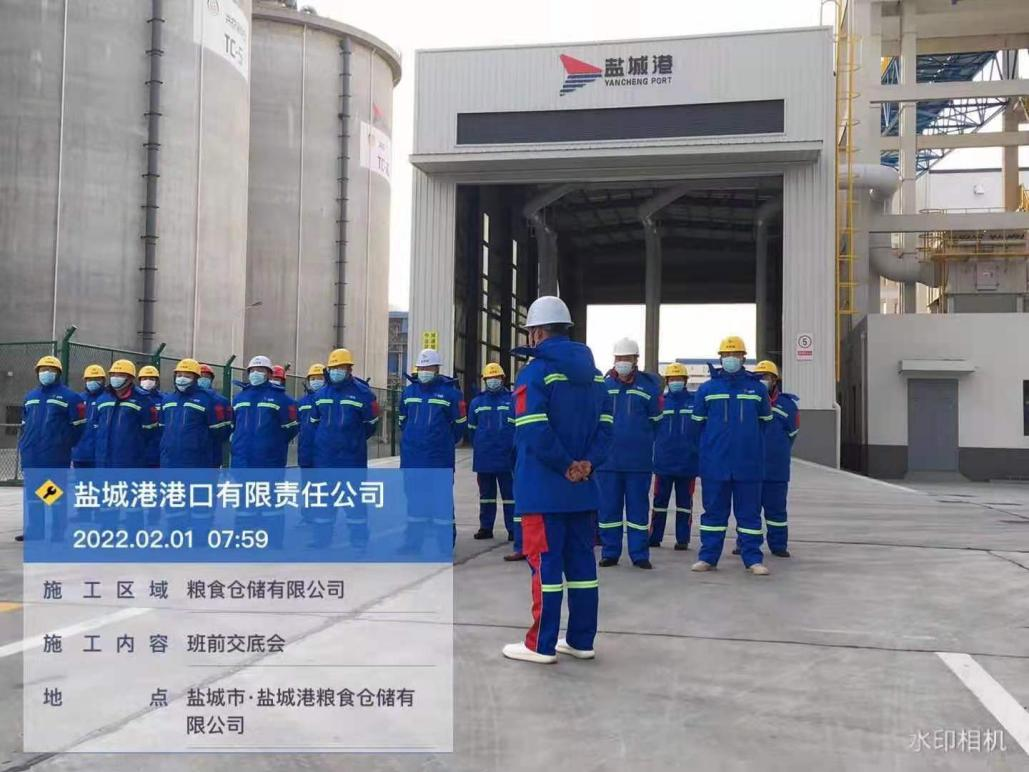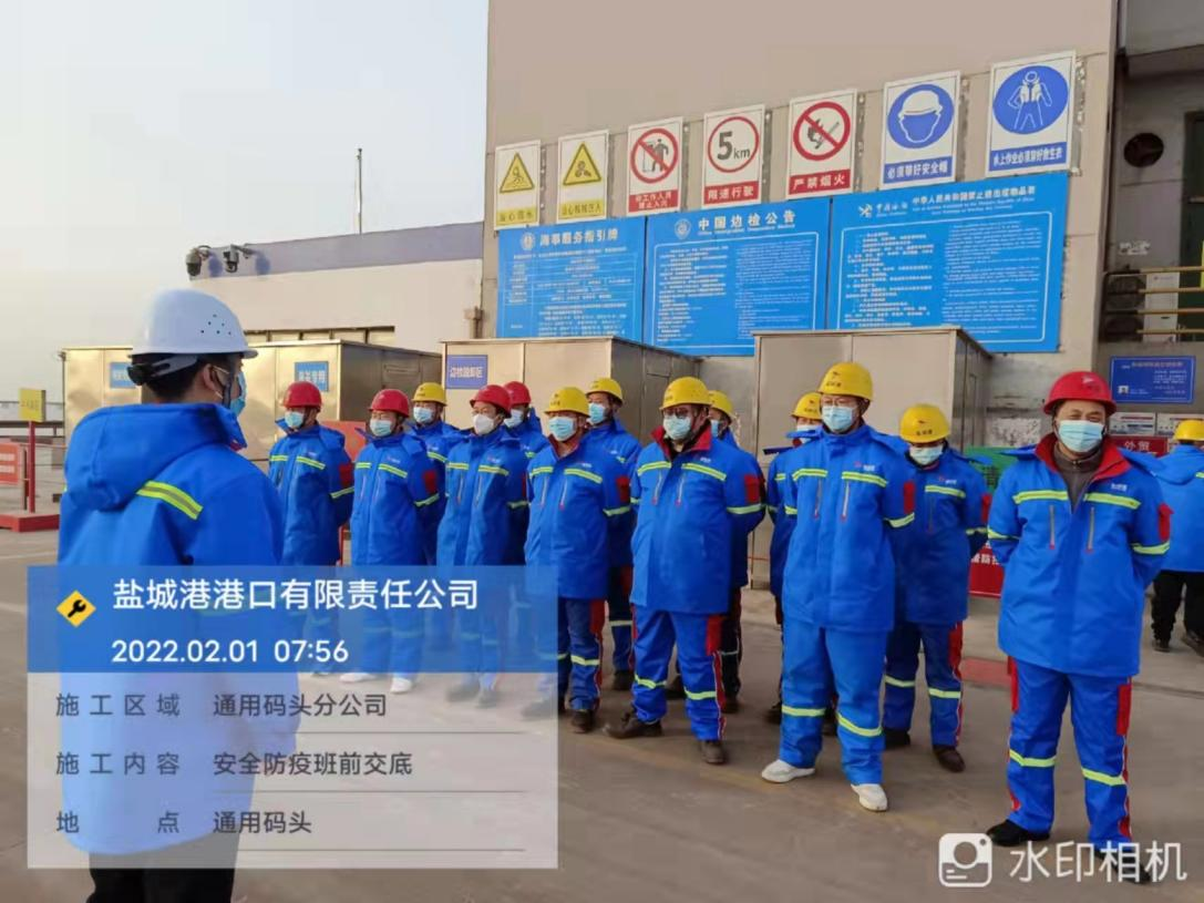 農(nóng)歷正月初一,鹽城港大豐港區(qū)港口公司各子(分)公司在碼頭(作業(yè)現(xiàn)場),如往常一樣準點開始作業(yè)班前會,進行安全生產(chǎn)、疫情防控工作交底。