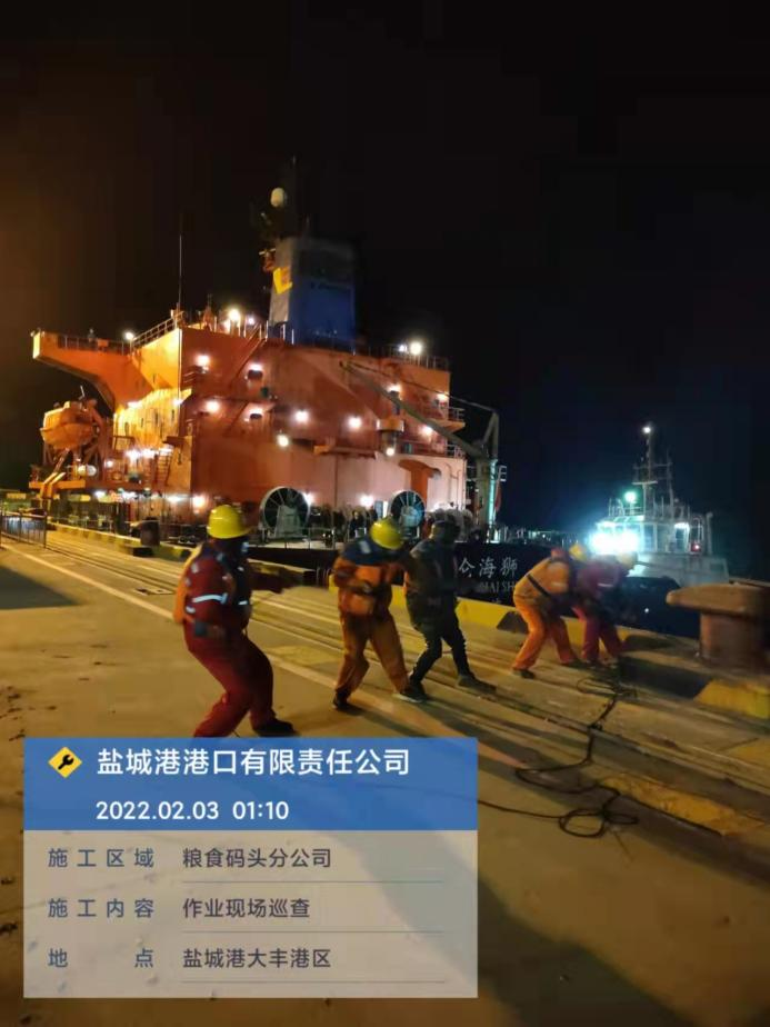 農(nóng)歷正月初三,鹽城港大豐港區(qū)港口公司碼頭共停泊4條外貿(mào)船作業(yè),公司安全管理人員進行了24小時不間斷巡查。
