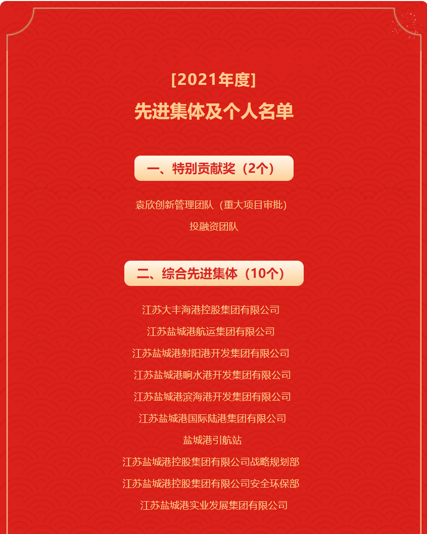 江蘇鹽城港控股集團有限公司 2021年度先進集體及個人名單