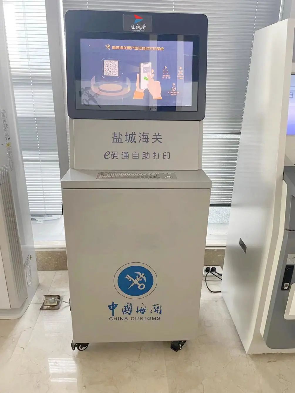 疫情防控期間,鹽城港提供了2臺原產地打印一體機,一臺安裝于鹽城綜合保稅區1樓報關大廳,一臺安裝于鹽城海關駐大豐港辦事處,服務鹽城所有進出口外貿企業原產地證自助打印,減輕現場窗口作為密集場所的防疫壓力,為企業提供便捷高效的線上服務。