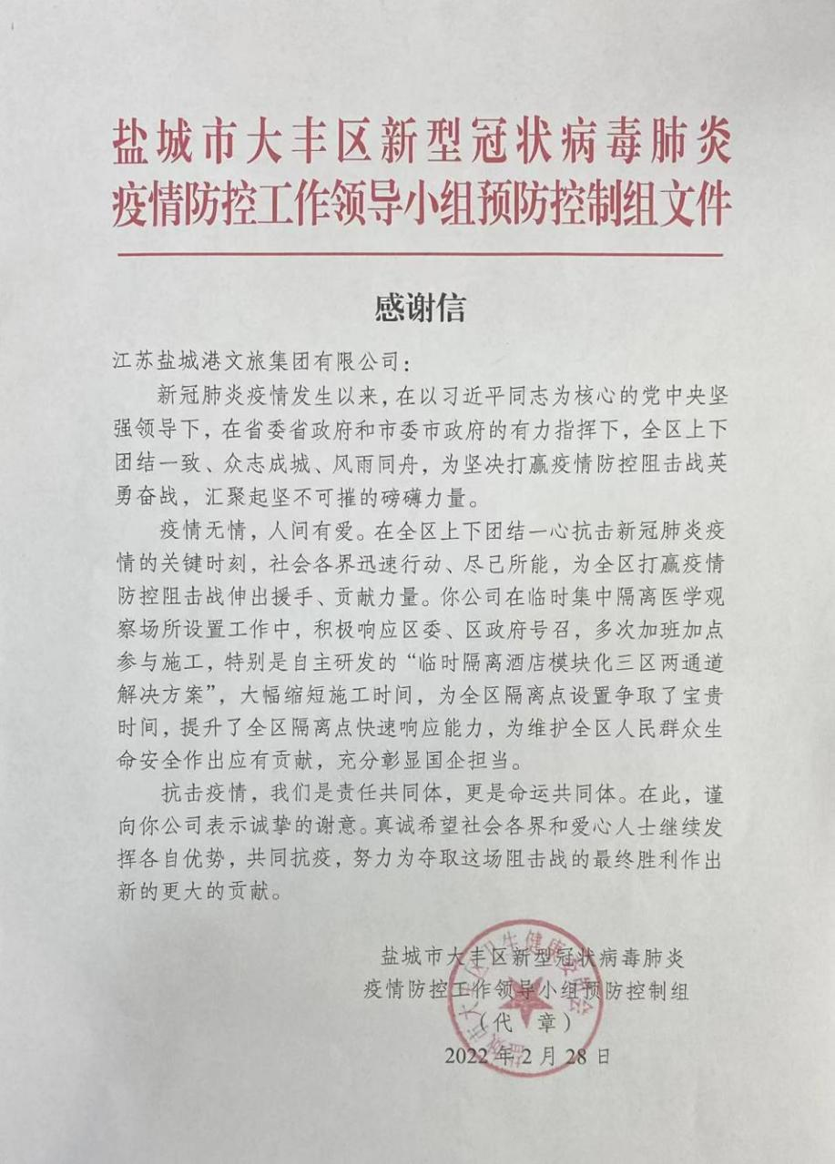 在常態(tài)化疫情防控形勢(shì)下,文旅集團(tuán)嚴(yán)格按照鹽城港集團(tuán)的指示要求,把疫情防控工作列為現(xiàn)階段的頭等大事和首要任務(wù),以高度的使命感、責(zé)任感、緊迫感推進(jìn)疫情防控各項(xiàng)舉措,從嚴(yán)從緊從細(xì)抓實(shí)疫情防控各項(xiàng)工作。同時(shí),依托集團(tuán)的現(xiàn)有資源,為社會(huì)和企業(yè)做好服務(wù),全面打響文旅集團(tuán)疫情防控“明亮窗口 服務(wù)先鋒”品牌口號(hào)。