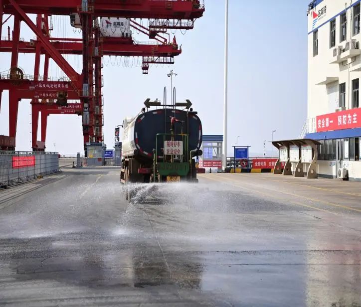一輛輛環(huán)保車(chē)輛行駛在港區(qū)各處
