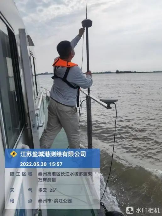 近日,江蘇鹽城港測繪公司受江蘇誠泰測繪科技公司委托,對泰州醫藥高新區(高港區)長江水下地形測量項目多波束分段進行水下掃測。