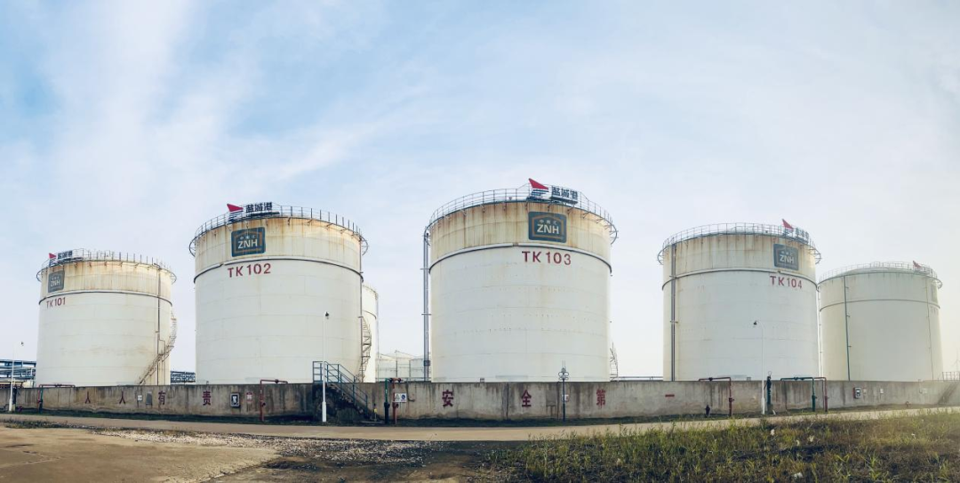 遠(yuǎn)處高聳的白色石化倉儲罐