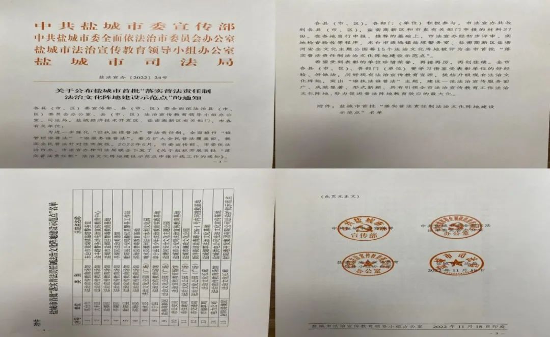 11月18日,射陽港區(qū)法治文化陣地榮獲鹽城市首批“落實普法責任制法治文化陣地建設示范點”稱號。潛移默化弘揚法治文化,滿足職工日常法律需求,全方位提高全體職工法治素養(yǎng),為港區(qū)經營發(fā)展提供有力的法治保障。
