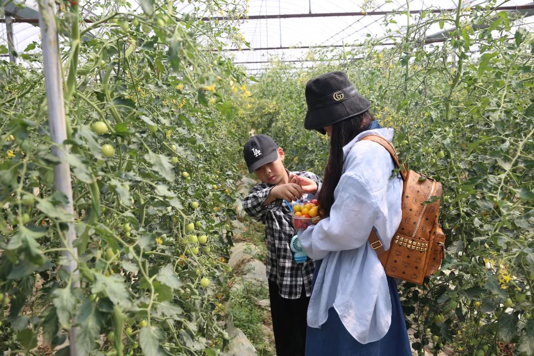 “媽媽,我們要去摘小番茄咯!”“媽媽,我要摘最大最甜的小番茄送給你?!痹诤⒆优c家長們你一言我一語的交談中,親子采摘活動正式開始。家長們手把手地教孩子們如何判斷果實成熟了沒有,提醒孩子在采摘過程中要愛護藤蔓不要折斷根莖,讓孩子們在勞動中學習知識體驗生活。孩子們歡快地在走道里穿梭著,每一雙小手里都握著鮮美甘甜的果實,笑容在一張張稚嫩的臉龐上歡快地綻放著,家長們也通過與孩子們的互動與交流,增進了彼此之間的了解。