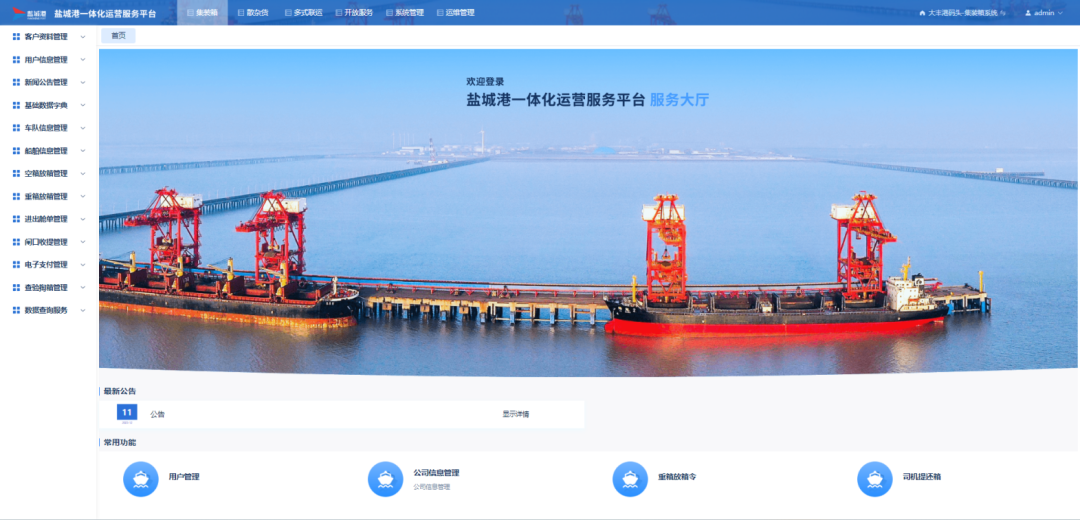 網上營業廳是綜合性客戶服務中心平臺,將口岸服務功能高度集成,提供在線咨詢、預約、支付等服務,以及數據查詢、統計分析等功能,實現各碼頭TOS系統、鹽城電子口岸平臺、海關海事、客戶自有服務等系統對接互聯,是現代港口服務的重要創新,利用互聯網技術和信息化手段,提高了港航企業的服務水平和運營效率,同時也為貨主等用戶提供了更加便捷、高效的服務體驗。