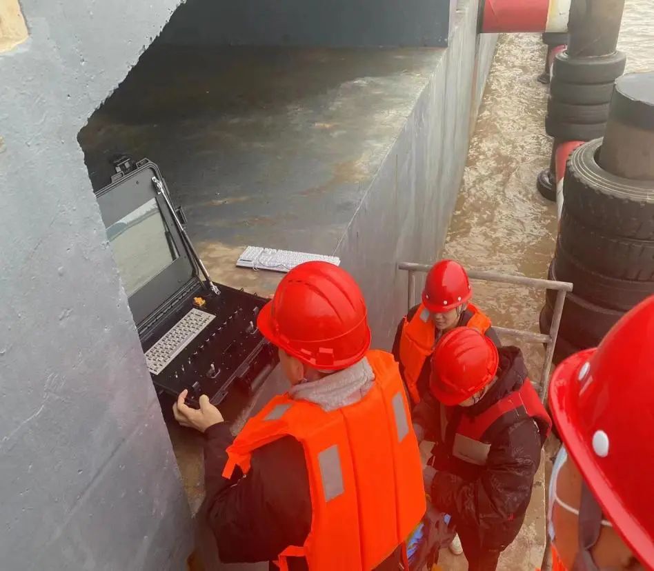 ▲勘測公司與江蘇科技大學在大豐港區安保船碼頭進行了水下機器人作業環境調研。