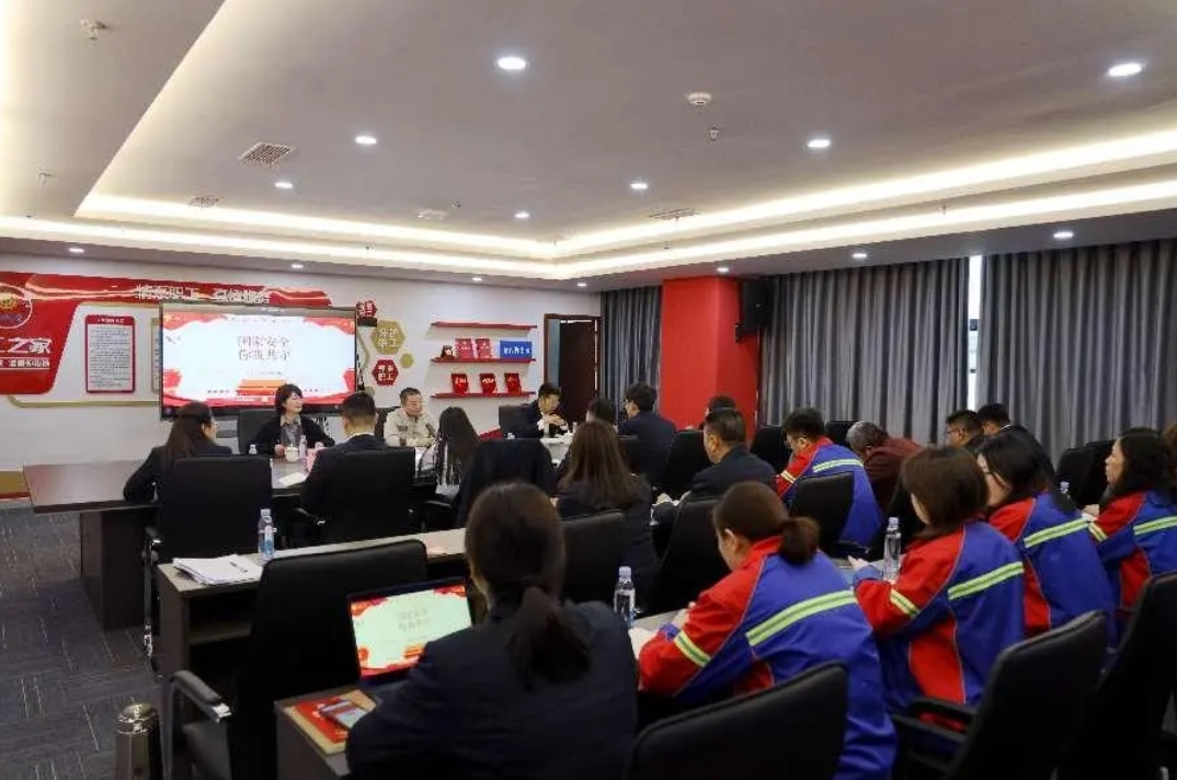通過懸掛條幅、現場PPT講解等方式,向職工發(fā)放《中華人民共和國國家安全法》《中華人民共和國反間諜法》等宣傳手冊,詳細講解有關國家安全法、反恐怖主義法、道路交通安全法等國家安全的法律知識,提高對國家安全法律法規(guī)知曉度,使“維護國家安全人人有責”的觀念根植于心、入腦入心。