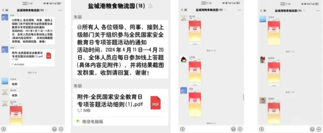 線上利用公司微信群、黨員學習微信群發(fā)送學習資料,全方位、多角度宣傳國家安全知識,進一步增強“國家安全無小事”的觀念和意識。