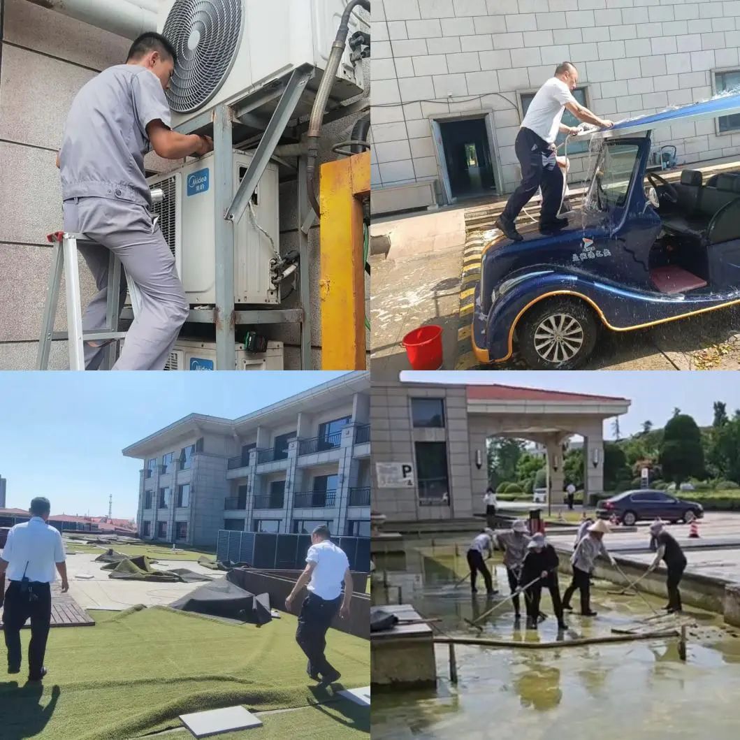 高溫?fù)舨豢妍}城港人對事業(yè)的熱愛、對崗位的忠誠。頂著烈日的忙碌身影,鋪被風(fēng)吹散的草坪、清理遍布綠色苔蘚的水池、清洗觀光車、維修設(shè)備.....,他們用強(qiáng)烈的責(zé)任心與可靠的專業(yè)技能,讓客戶用得放心。