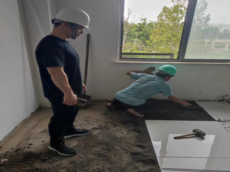 在港海會議中心辦公樓施工現(xiàn)場,項目施工團隊與管理團隊嚴格按照施工方案進行作業(yè)?!斑B廊吊頂?shù)脑煨捅仨毎凑請D紙施工,同步布線管......”項目現(xiàn)場負責人在現(xiàn)場緊盯每一道施工工藝,每一個環(huán)節(jié),實地發(fā)現(xiàn)并解決問題,確保項目安全、高效推進。截止目前,項目施工進度已完成60%。