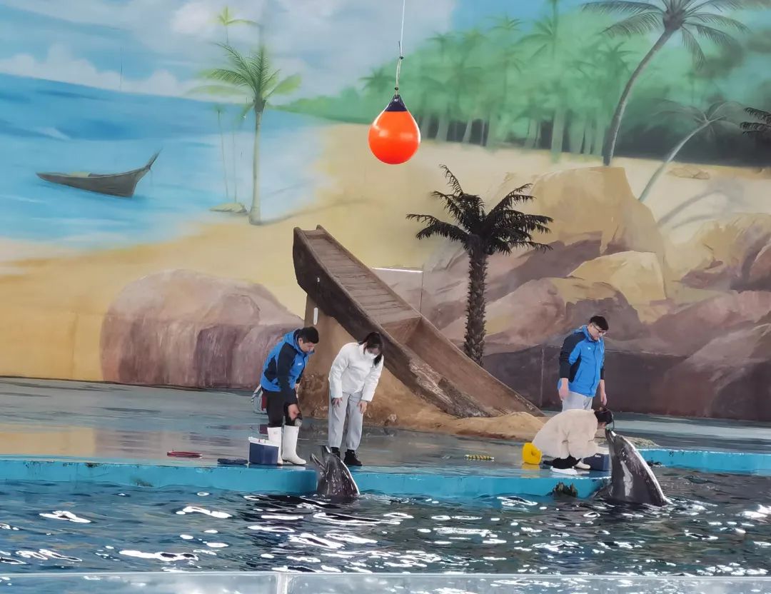 在海洋劇場,海豚明星們與馴養師默契配合,在水中奉獻出一場場精彩的演出,海豚們靈活的身姿、可愛的外表、天籟般的歌聲以及馴養師們卓越的水秀技巧,贏得了現場觀眾的陣陣歡呼。