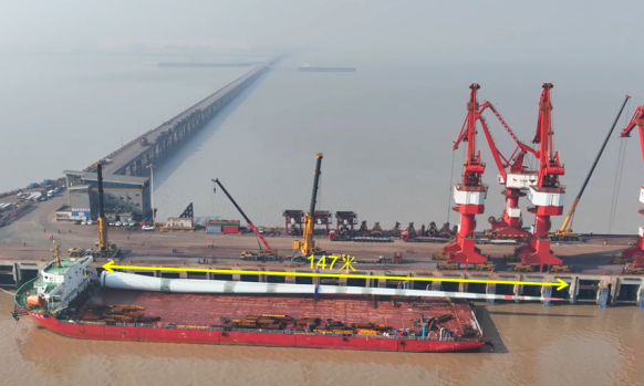 越來越多的風(fēng)電葉片通過港口運(yùn)往各地