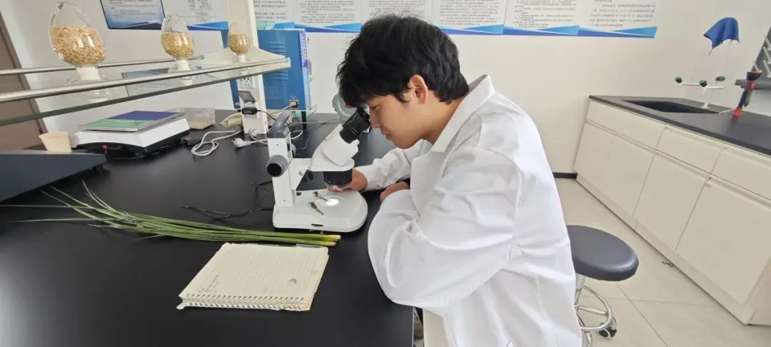 在水稻拔節孕穗的關鍵階段,金色農業的生產技術人員著手對制種稻進行花期剝查工作。技術員運用專業手法剝開水稻主莖葉片,借助解剖鏡、顯微鏡等精密工具,細致觀察父母本幼穗的形態及余葉動態,精準預測花期差距。這一技術環節已被納入制種全流程管控體系,使得看似簡單的操作成為判斷父母本花期是否相遇、確保授粉成功的關鍵“黃金標準”。