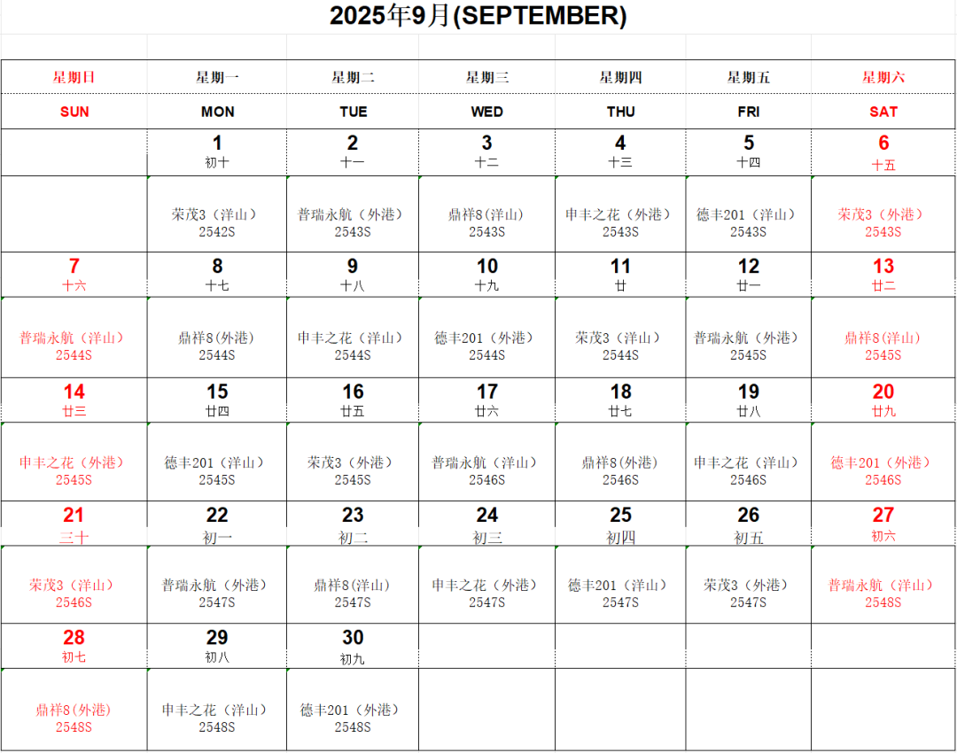 “滬鹽專線”9月船期表已經(jīng)新鮮出爐!