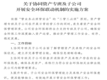 嚴格遵循“管業務必須管安全”的原則,將安全環保管理全面嵌入資產運營全過程。安環部以“服務、賦能、保障”為工作導向,與各專班及子公司條線人員建立“一對一”掛鉤服務機制,通過開展現場隱患排查、規范管理臺賬、完善安全制度、組織應急演練等實操措施,切實提升條線協同效能。在技術層面,提供專業咨詢與風險評估協助;在資源層面,共享安全防護物資、法律法規案例及第三方檢測評價資源;在服務層面,建立常態化溝通機制和專人指導制度,針對承租戶明確租賃安全責任、加強政策宣貫、協助開展隱患自查,并建立健全動態信息檔案。此外,每月定期組織聯動機制會商,持續推動資產安全環保管理向“標準化、精細化、長效化”邁進。