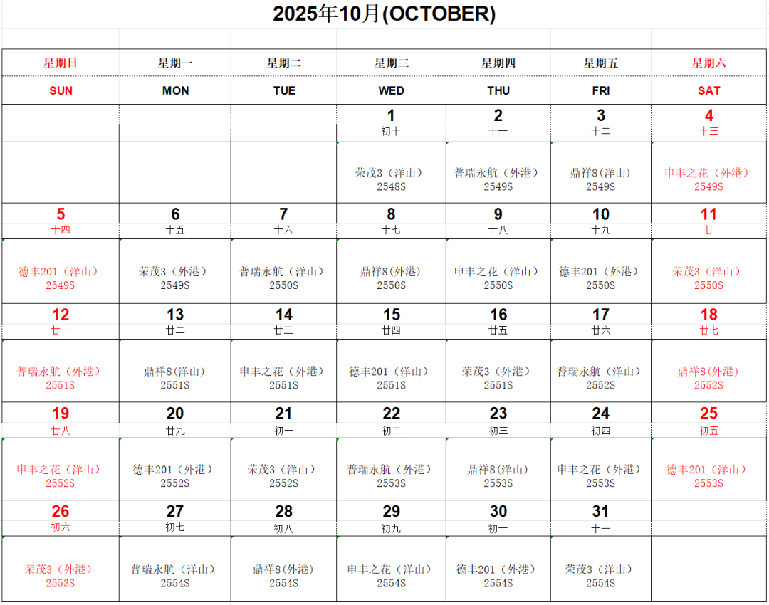 船期速遞丨叮咚!“滬鹽專線”十月船期表已到達