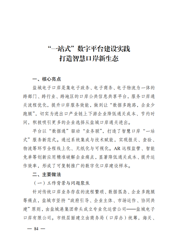 近日,市優化營商環境工作領導小組辦公室發布《2025年鹽城市優化營商環境優秀創新實踐案例匯編(第一批)》,由市商務局、鹽城港集團聯合推送的“鹽城電子口岸一站式數字平臺建設實踐”成功入選。該平臺以“數據通”驅動“業務聯”,通過系統集成與技術賦能,打造智慧口岸服務新范式,為全市優化口岸營商環境提供了有力支撐。