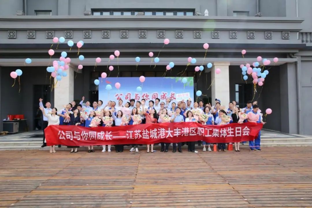 為深入貫徹鹽城港集團黨委關于加強人文關懷、增強職工“六感”部署要求,在鹽城港成立三周年之際,6月13日,來自鹽城港大豐港區碼頭、堆場以及服務一線的30名職工代表匯聚一堂,共同開展6月集體生日會活動,增進公司員工的內部凝聚力,加強“家文化”建設。鹽城港集團副總經理、大豐港開發集團董事長袁欣,大豐港區各公司負責人參加活動。