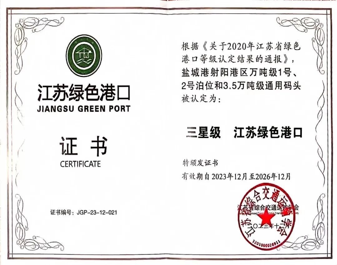 喜報!三家單位榮獲“江蘇省星級綠色港口”稱號