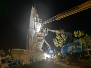 隨著最后一組LED燈光調(diào)試完成,鹽城港響水港區(qū)入口處,一座高17米的藍(lán)白色地標(biāo)建筑正式點(diǎn)亮。這座以“乘風(fēng)破浪”為設(shè)計(jì)理念的“精神堡壘”,歷經(jīng)三個(gè)月攻堅(jiān)建設(shè),成為展示港區(qū)形象、服務(wù)城市交通導(dǎo)航的多功能地標(biāo)。
