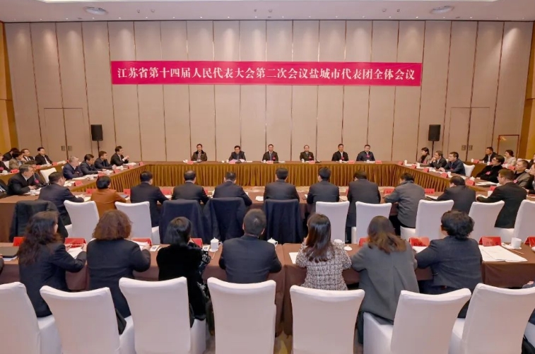 江蘇省第十四屆人民代表大會(huì)第二次會(huì)議將于1月23日上午在南京開幕。22日晚,鹽城市代表團(tuán)在駐地召開全體會(huì)議,傳達(dá)學(xué)習(xí)省兩會(huì)黨員負(fù)責(zé)同志會(huì)議精神和省委書記信長星講話要求,推選代表團(tuán)團(tuán)長、副團(tuán)長,宣布小組召集人名單,審議有關(guān)草案。