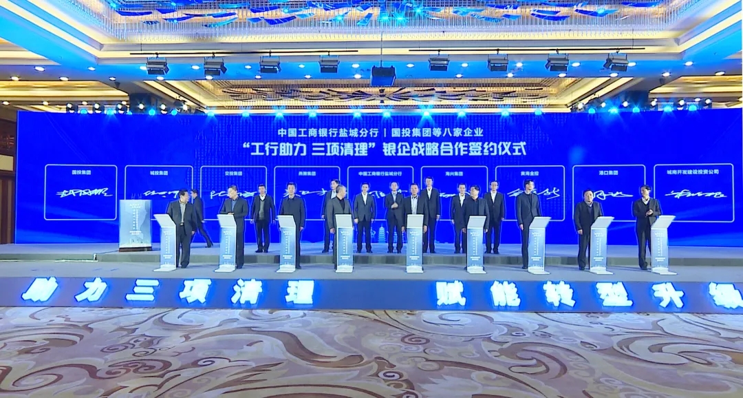 12月17日下午,鹽城市人民政府與中國工商銀行江蘇省分行“工行助力三項清理”政銀戰略合作簽約活動隆重舉行。集團黨委書記、董事長、總經理周正雄參加活動并與工行鹽城分行簽訂了《戰略合作協議》。